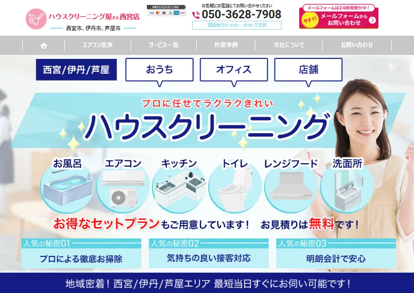 WEB上で予約した時点で料金が確定するため、当日になって「汚れがひどいから」と追加料金を請求される心配がありません。仕事や家事で忙しく、見積もりに時間を割けない芦屋の共働き世帯にも非常に選ばれています。